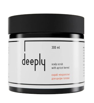deeply scalp scrub with apricot kernel - це скраб для шкіри голови, призначений для дбайливого очищення шкіри голови від залишків стайлінгу, силіконів, які містяться в домашньому догляді за волоссям, а також відмерлих часток шкіри та надлишків жиру. Формула, яка містить дрібні частини абрикосової кі..