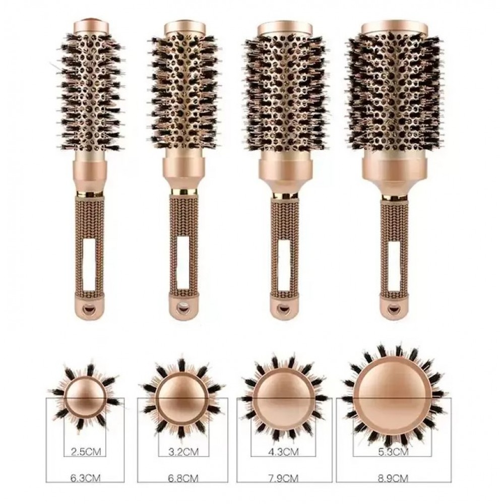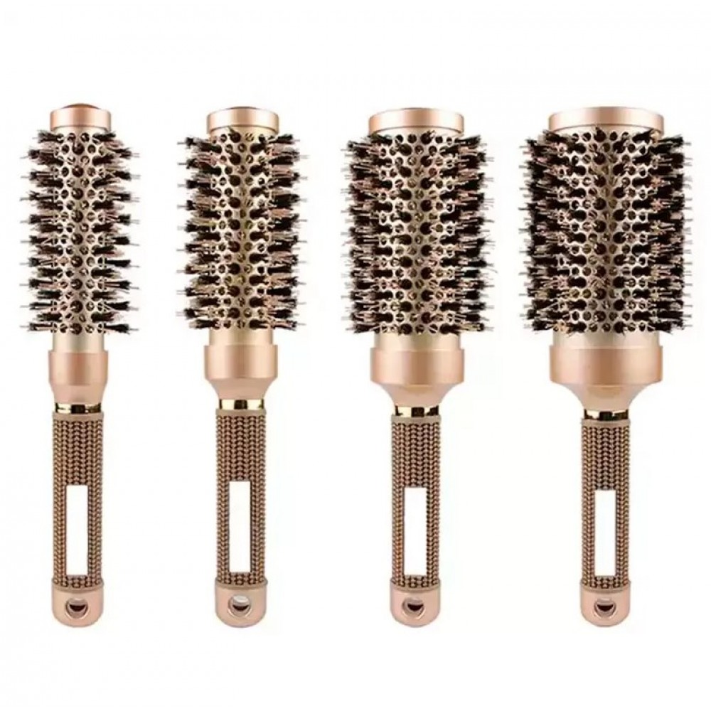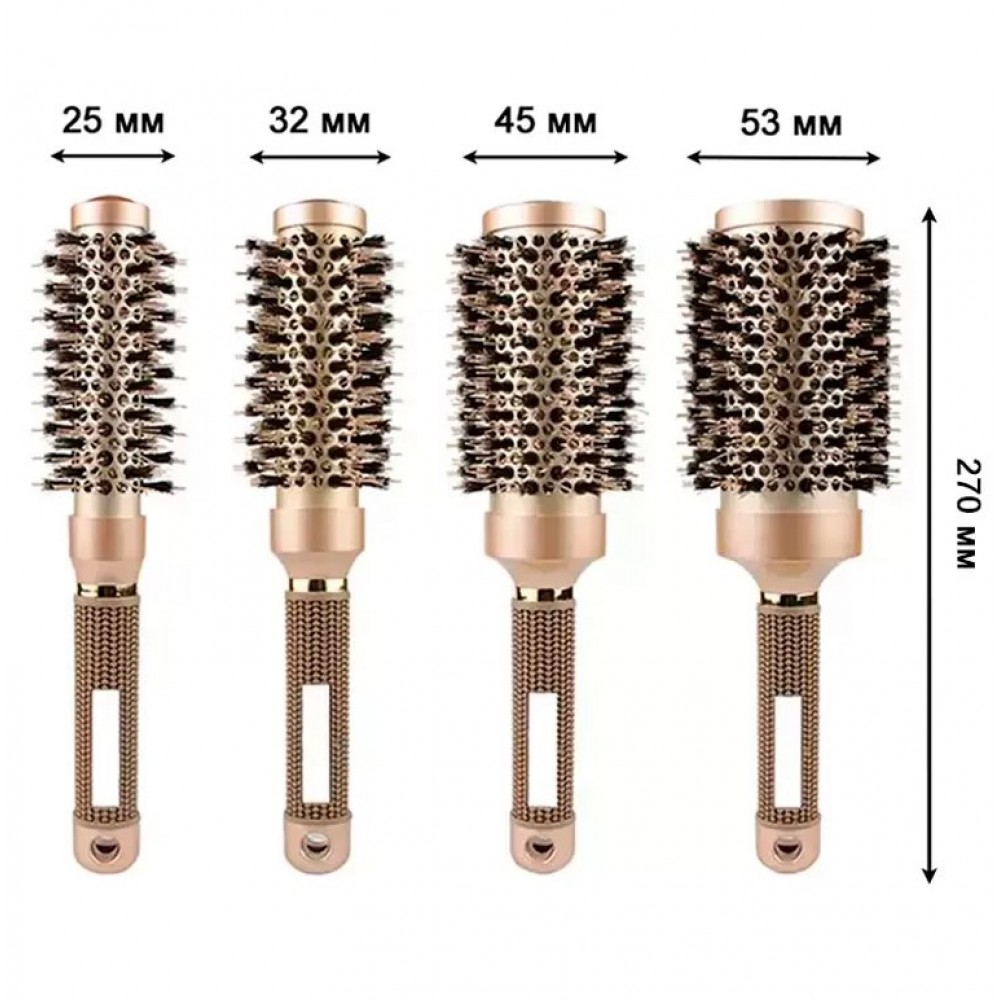 Набір професійних термобрашів для волосся Nano Technology Ceramic Ionic круглих керамічних золотих, 27 см