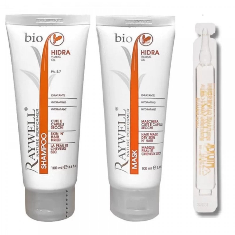 Набор для домашнего ухода Raywell Bio Hidra шампунь и маска для увлажнения волос 2x100 мл + 1 ампула