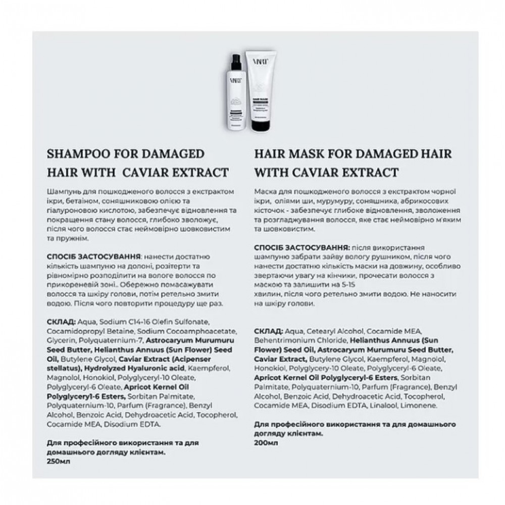 Набор VIART DUO with Caviar Extract шампунь и маска для восстановления и разглаживания волос, 2х1000 мл
