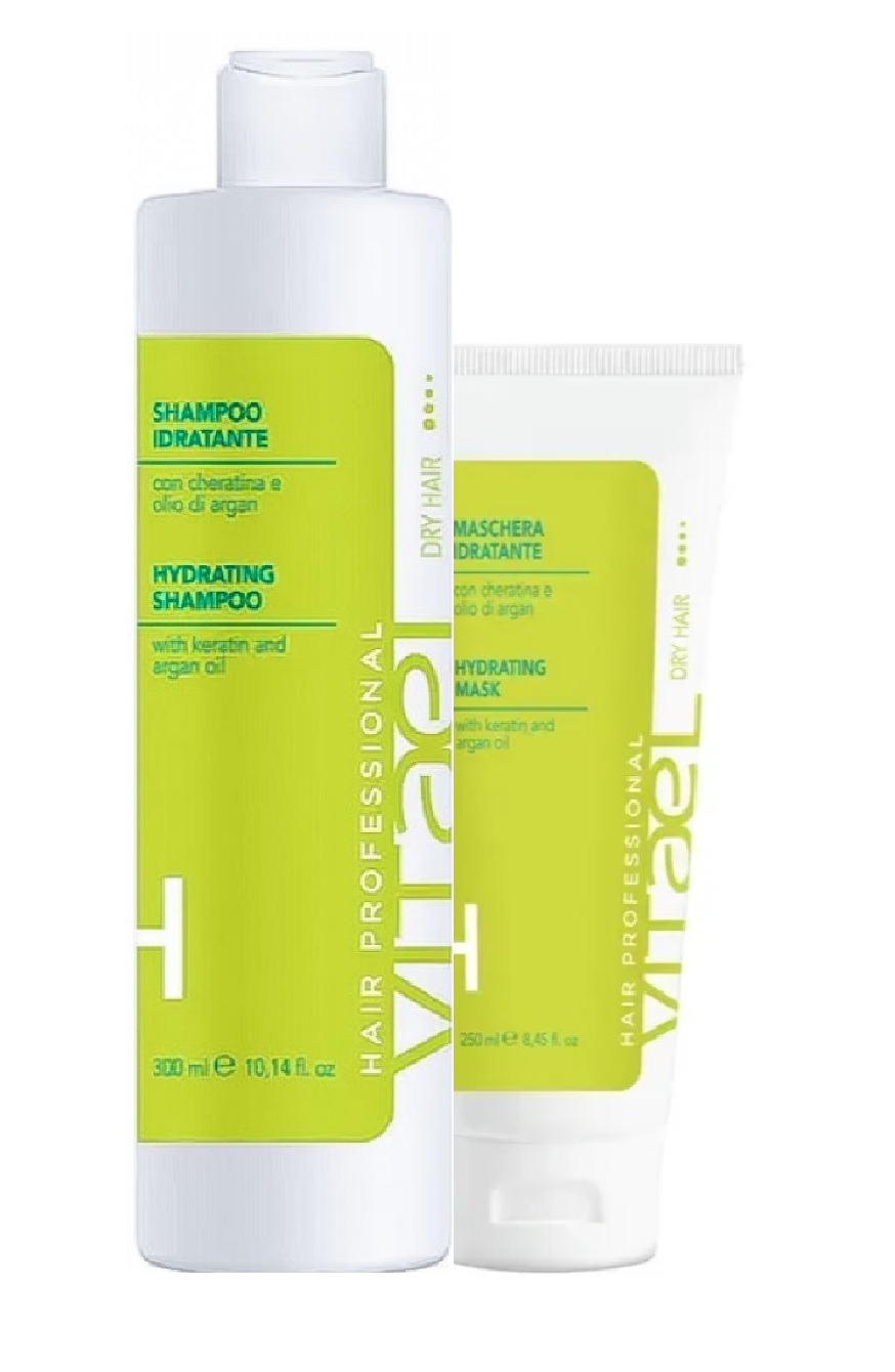 Комплексний догляд для сухого, пошкодженого або фарбованого волосся з вираженим зволожувальним і відновлювальним ефектом. У набір входять два продукти з активними компонентами: гідролізованим кератином, маслами аргани та ши, пантенолом і протеїнами. Засоби живлять, зміцнюють структуру волосся, підви..