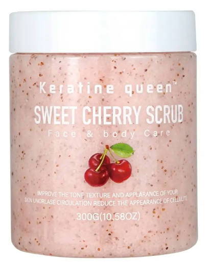 Скраб для тіла Keratine Queen з ароматом вишні створений для м’якого, але ефективного очищення та оновлення шкіри. Засіб делікатно відлущує ороговілі клітини, допомагає вирівняти тон і покращити текстуру шкіри, повертаючи їй доглянутий та свіжий вигляд. Формула підходить для регулярн..